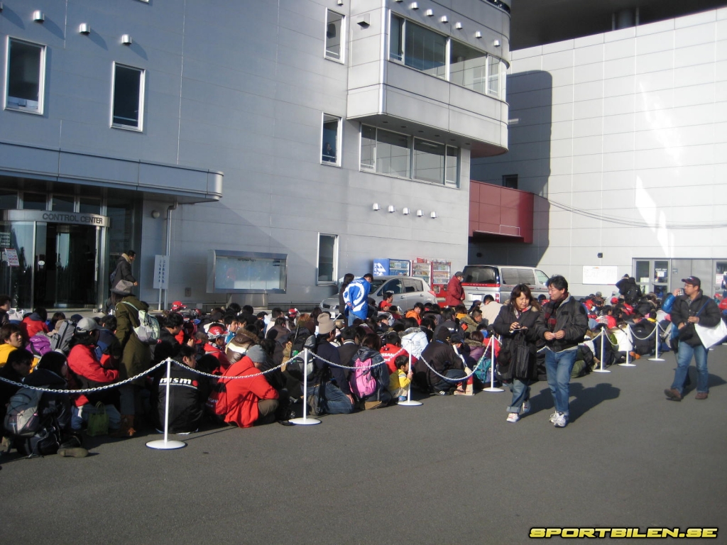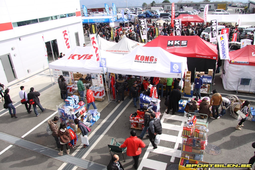 Raden av billyktor i mörkret ringlar långt ut på bergsvägarna från Fuji Speedways båda entréer. Efter entrén leder en sexfilig väg in på området och strömmen av bilar fyller stadigt på samtliga parkeringsytor. Besökare har blivit ombedda att samåka eller åka en av de bussar som går i skytteltrafik mellan närbelägna byar och motorbanan då parkeringsmöjligheterna är begränsade. För en skandinav upplevs dock terrassparkeringarna längs bergssluttningen som enorma. Tänk dig sedan dessa parkeringsytor fyllda av tusentals skatter och bilmodeller du aldrig tidigare sett i verkligheten. Bara på parkeringen. Det ger en föraning om vad som komma skall.