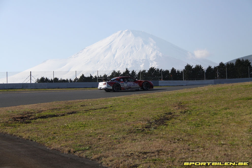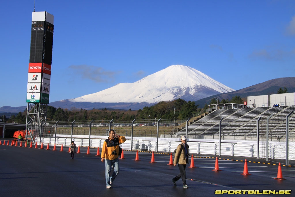 När solen så småningom söker sig över bergstopparna upptäcker man hålögda japaner som redan tillbringat många timmar på NISMOs stora utställningsyta bakom Fuji Speedways enorma läktare. De har köat i flera timmar för att handla för dagen något billigare modellbilar, Nissan- och NISMO accessoarer samt begagnade motorsportdelar och kläder från NISMOs garageförsäljning. Det är då man får den första lilla aningen om hur stort detta är för japanska Nissan-fans. Köa i flera timmar i mörker och kyla för att få köpa en begagnad fleecetröja som någon av team-mekanikerna haft under säsongen. Wow. Tanken hinner lagom landa i medvetandet då man vänder sig helt om och ser det mäktiga snöklädda Mount Fuji torna upp i sig i morgonsolen alldeles intill banan. Hänförande. Så vackert att man tappar andan. På en armlängds avstånd står gnistrande sportbilar, alla häftigare än något man tidigare sett. Nu är det dags att uppleva festivalen i dagsljus.