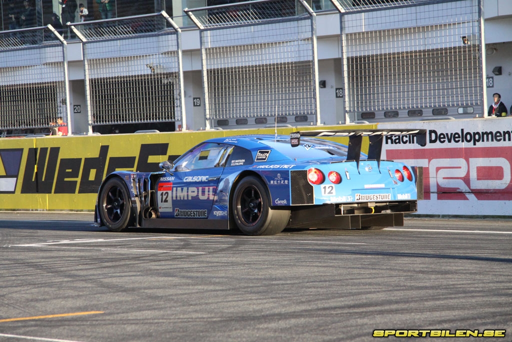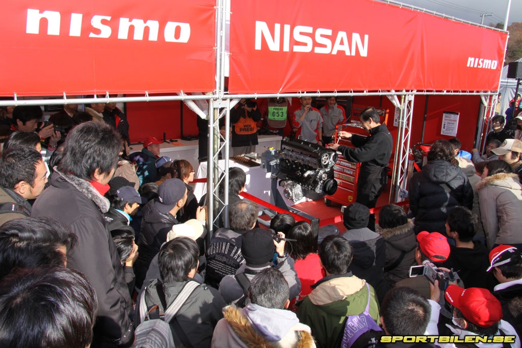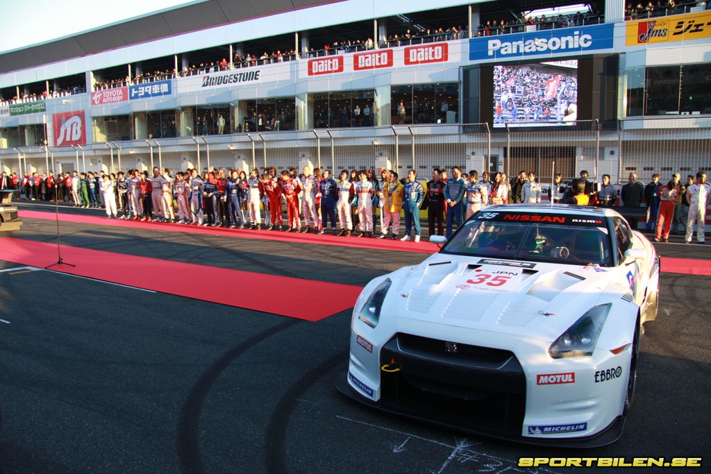 Ute på banan avlöser Z-bilar och GT-R:er i olika tappning varandra. Nissan GT-R FIA GT1 visas idag för första gången officiellt på Japansk mark. Sidepipesen gör att V8-ljudet liknar ett mullrande åskoväder när den på fullt flås susar förbi läktaren. Även om de inhemska tävlingsserierna är i särklass mest populära här i Japan så verkar det som att dessa Nissan-fans även kommer att följa FIA GT1 under 2010.